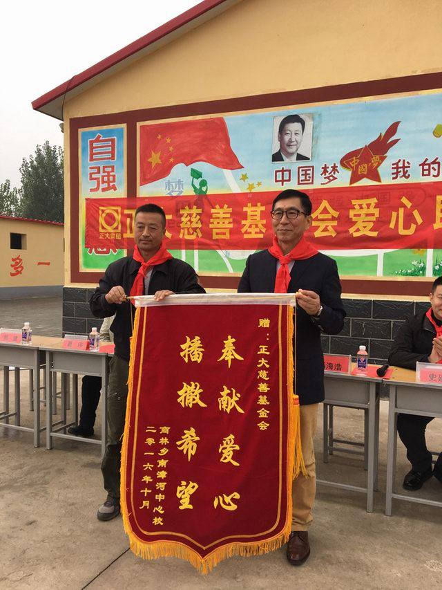 南漳河小學(xué)感謝正大慈善基金會(huì)的愛(ài)心善舉,并贈(zèng)送錦旗。