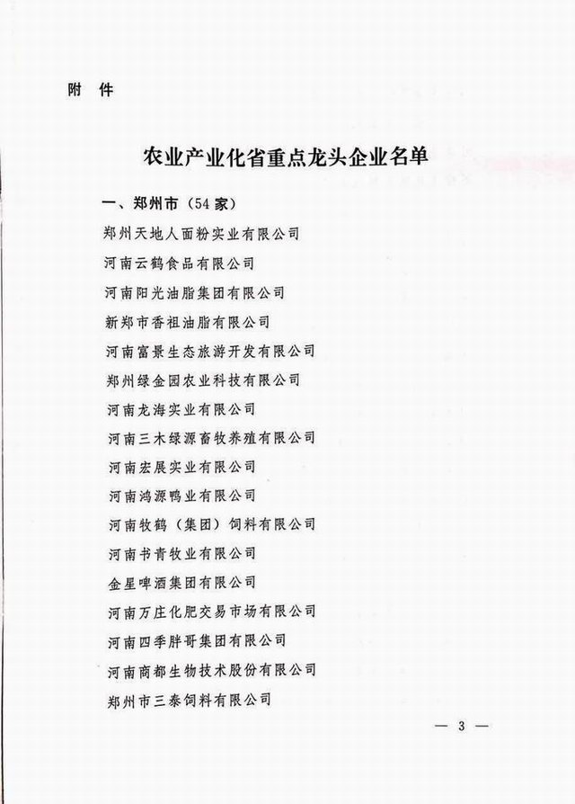 農(nóng)業(yè)產(chǎn)業(yè)化省重點龍頭企業(yè)2016.10.24 發(fā)布時間:2020-01-15來源:洛陽正大食品有限公司點擊:14014 上一篇:出口食品生產(chǎn)企業(yè)備案證明 下一篇:56.河南民營企業(yè)現(xiàn)代農(nóng)業(yè)100強